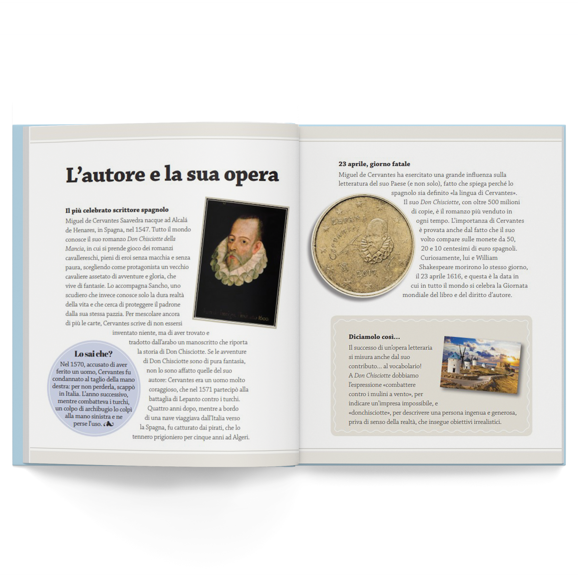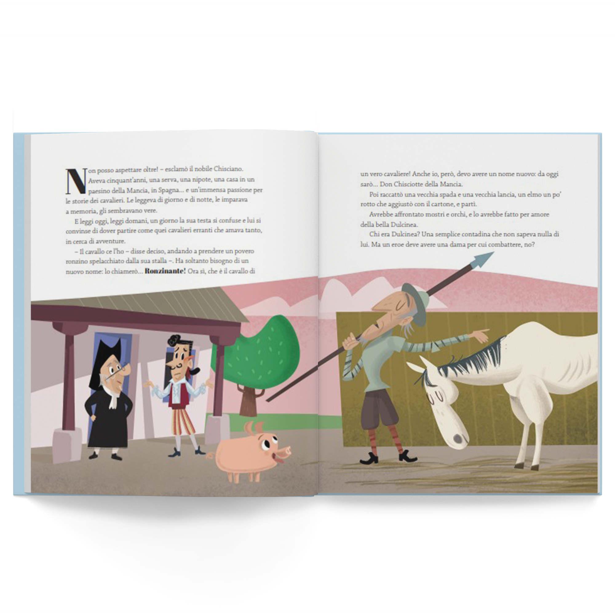 In un luogo della Mancia, di cui non vogliamo ricordare il nome, vive l’ingegnoso gentiluomo Don Chisciotte, a cui non piace altro che leggere romanzi cavallereschi. Ne è così affascinato che, un giorno, decide di diventare un cavaliere e partire in cerca di avventure, come se fosse uno dei personaggi di quei romanzi. Sarà accompagnato dal suo fedele amico e scudiero Sancho Panza, con il quale vivrà infinite avventure tra le più divertenti.